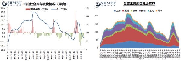 鋁錠社會庫存去庫進程減慢 總量降至70萬噸附近