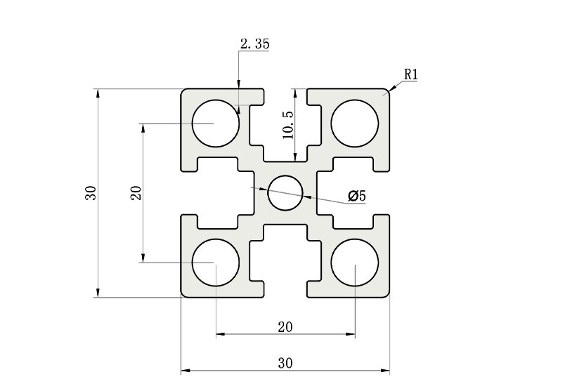 適用于應(yīng)力及強度較大的框架組合結(jié)構(gòu),它的外型采用直角過渡,表面經(jīng)過陽極氧化處理,高雅美觀并抗腐蝕,它通常采用M6X20高強度專用螺栓的內(nèi)部連接方式,堅固而又可靠,是工業(yè)框架應(yīng)用較為廣泛的型材之一。