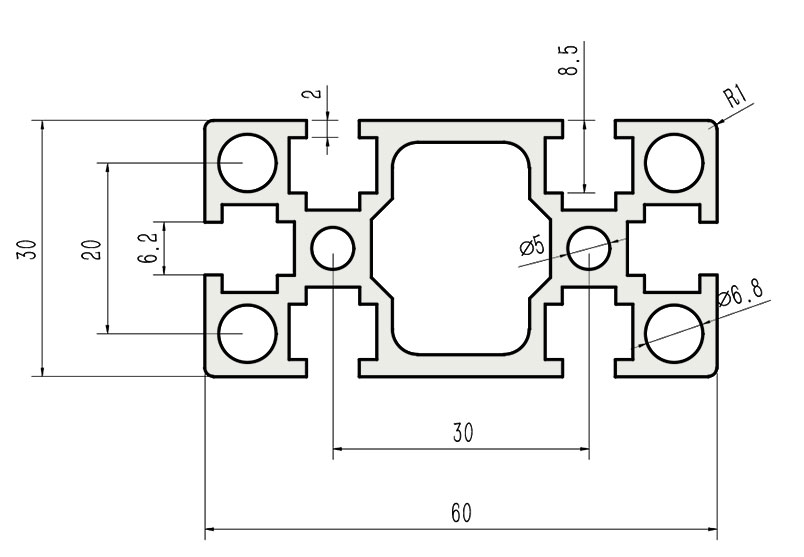 適用于應力及強度較大的框架組合結構,它的外型采用直角過渡,表面經(jīng)過陽極氧化處理,高雅美觀并抗腐蝕,它通常采用M6X20高強度專用螺栓的內(nèi)部連接方式,堅固而又可靠,是工業(yè)框架應用較為廣泛的型材之一。