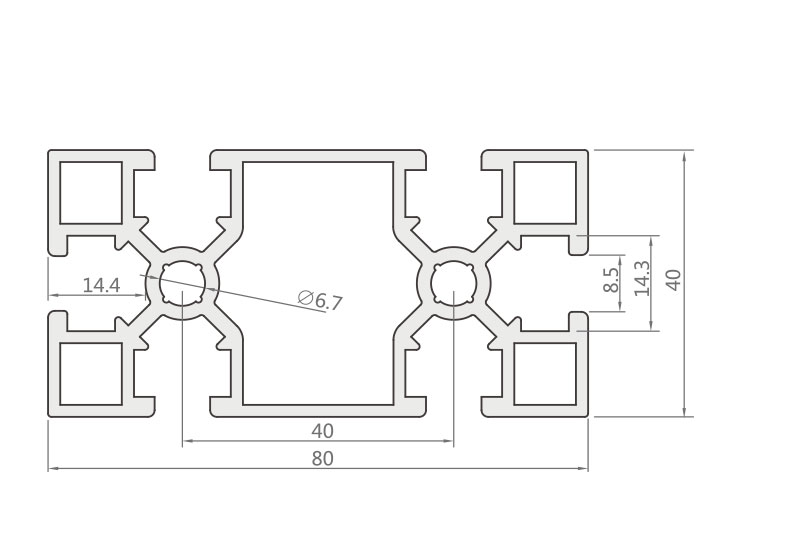 適用于應(yīng)力及強(qiáng)度較大的框架組合結(jié)構(gòu),它的外型采用直角過渡,表面經(jīng)過陽極氧化處理,高雅美觀并抗腐蝕,它通常采用M6X20高強(qiáng)度專用螺栓的內(nèi)部連接方式,堅固而又可靠,是工業(yè)框架應(yīng)用較為廣泛的型材之一。