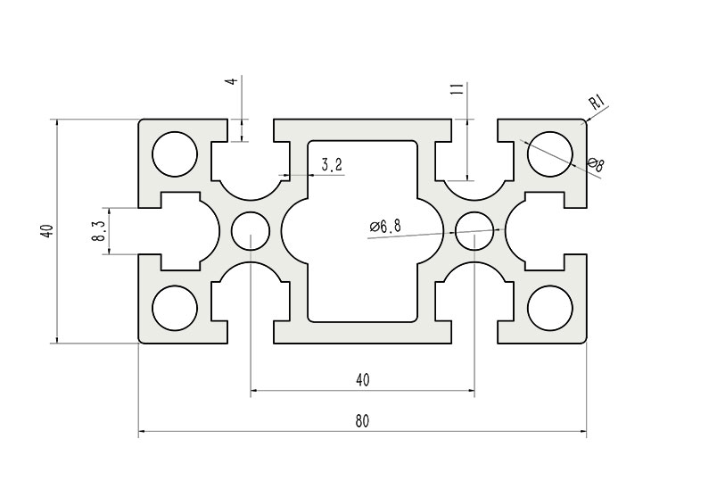 適用于應(yīng)力及強度較大的框架組合結(jié)構(gòu),它的外型采用直角過渡,表面經(jīng)過陽極氧化處理,高雅美觀并抗腐蝕,它通常采用M6X20高強度專用螺栓的內(nèi)部連接方式,堅固而又可靠,是工業(yè)框架應(yīng)用較為廣泛的型材之一。